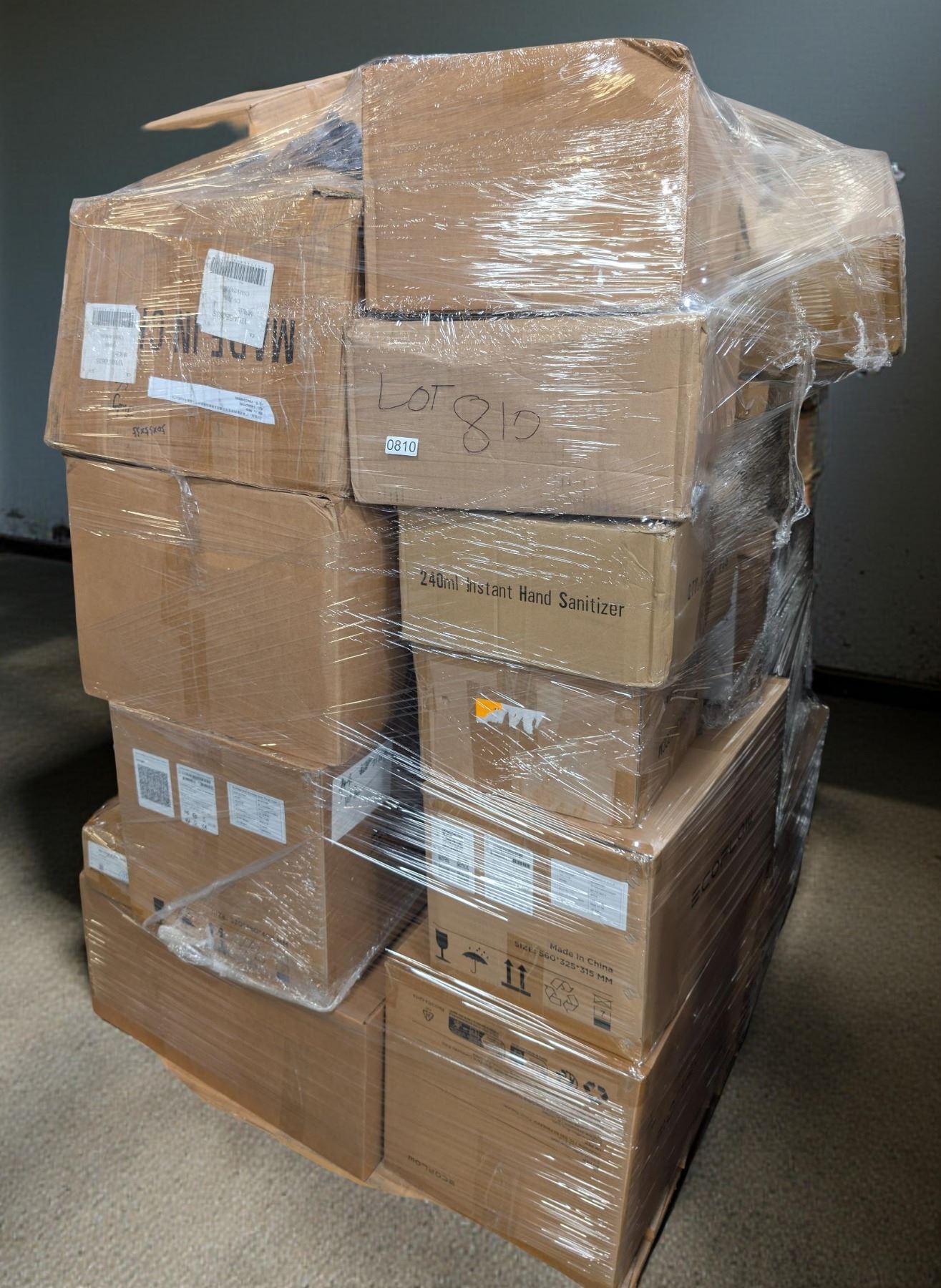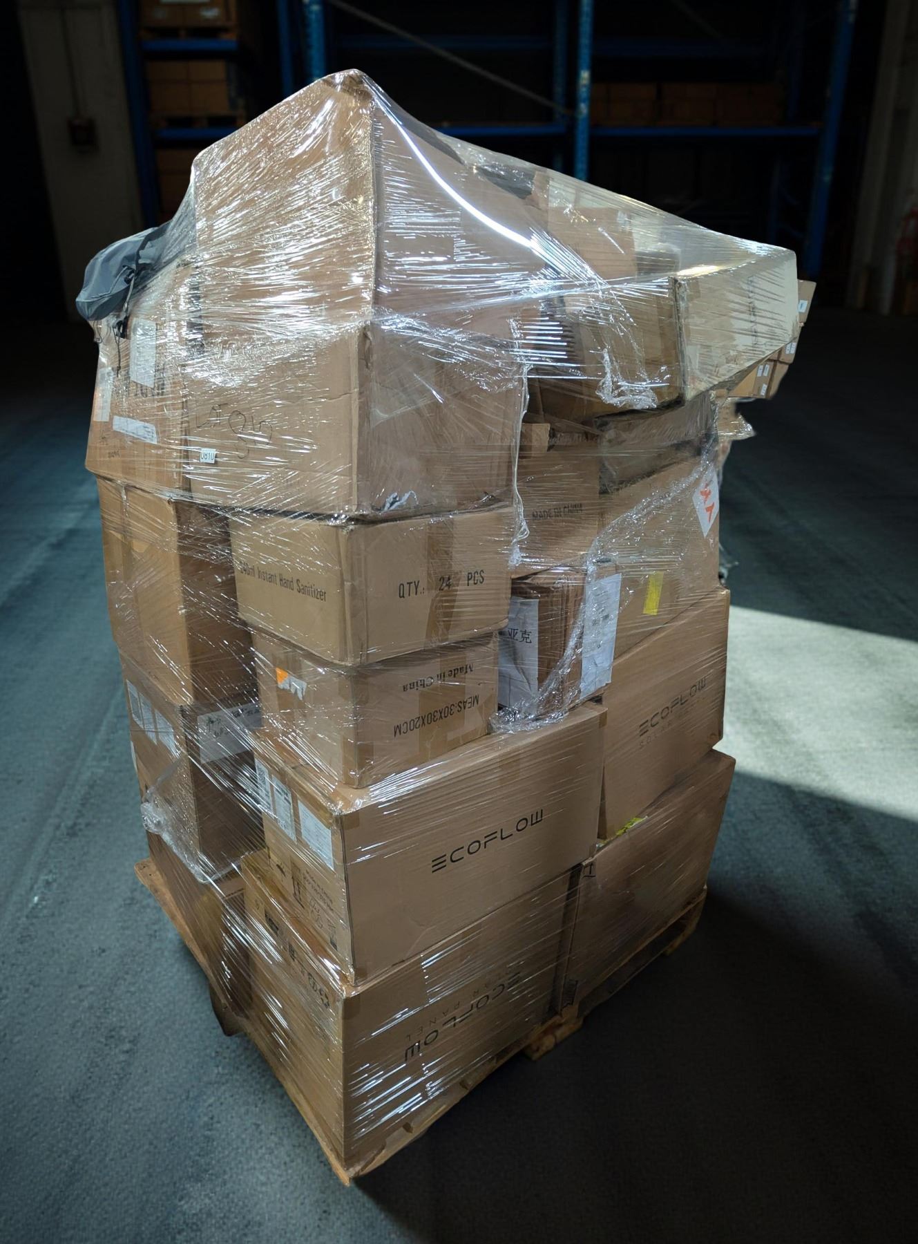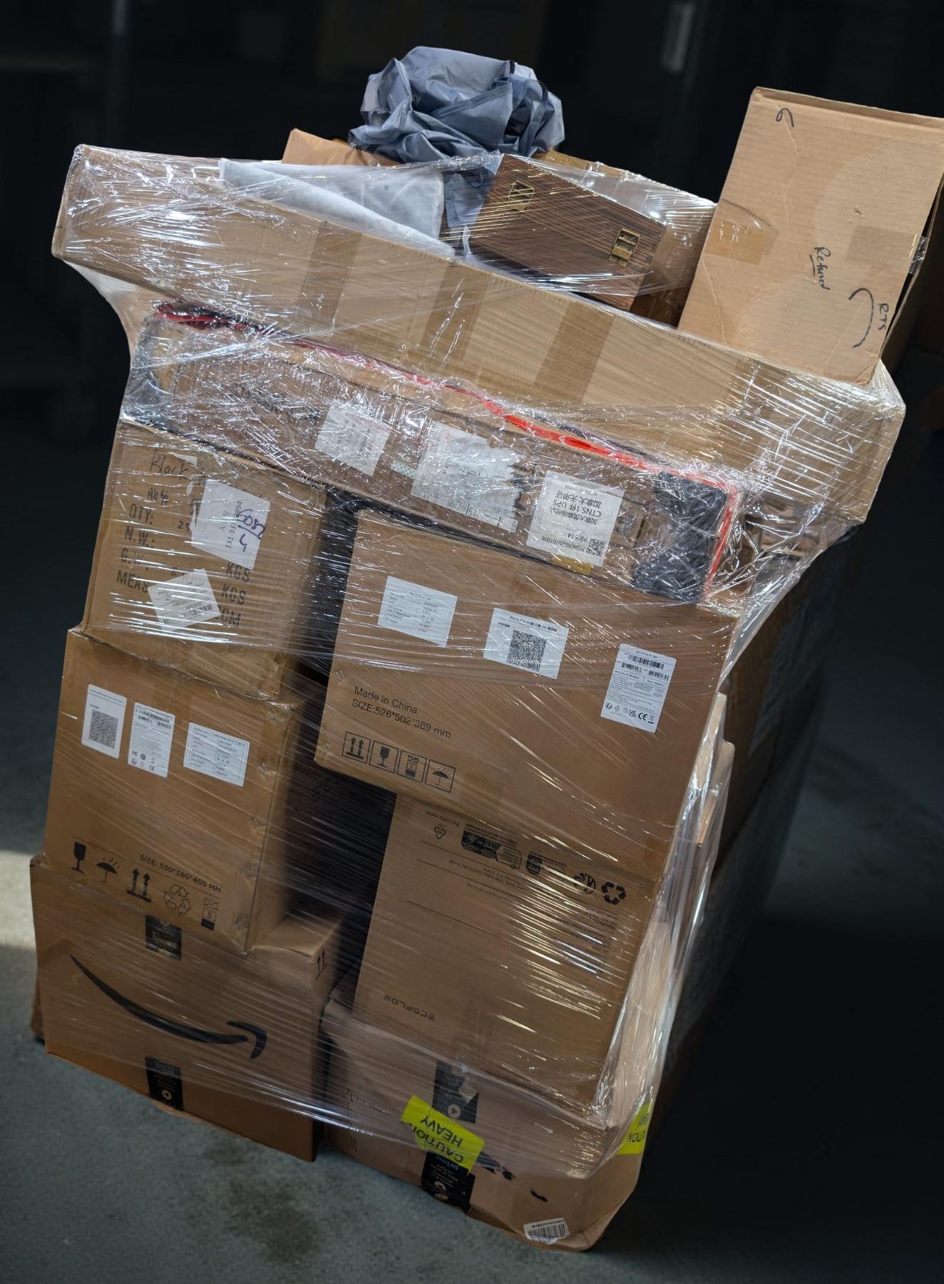Liquidation pallet full of assorted merchandise from fulfillment warehouse