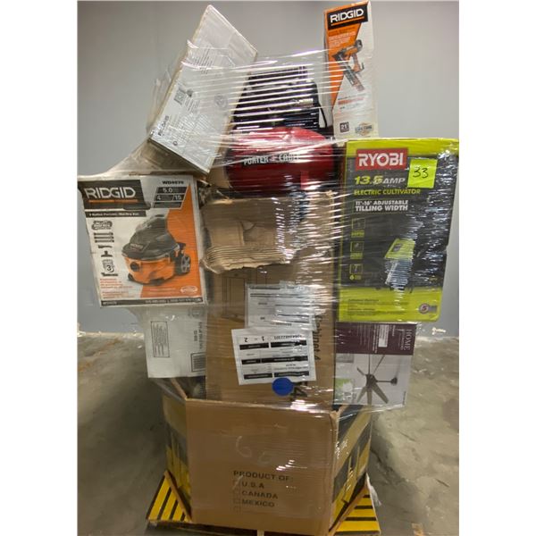 Lote de Herramienta y Home Improvements de la tienda Home Depot. Lote te incluye aspiradora marca Ridgid, compresor marca Porter, pistola de clavos ma