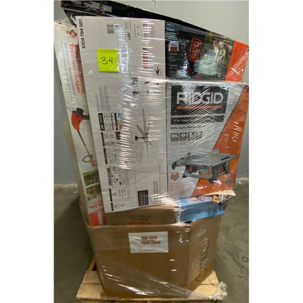 Lote de Herramienta y Home Improvements de la tienda Home Depot. Lote te incluye abanico de cielo, mesa cortadora marca Ridgid, trimmer marca Black De