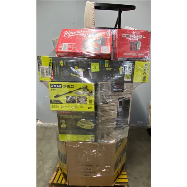 Lote de Herramienta y Home Improvements de la tienda Home Depot. Lote te incluye sopladora marca Toro, abanico marca Lasko, calentones, limpiador de d