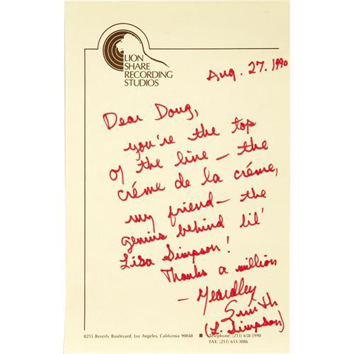 <B>Lisa Simpson Saxophone, with Extras Including Platinum Album Presentation.</B></I>The two decades-long (and counting) popularity of <I>The Simpsons </B></I> is a dynamic, cutting-edge chapter in TV history, and few sounds conjure the mad creativity of the early, irreverent, in-your-face episodes as Lisa Simpson wailing away on her saxophone. Doug Norwine, Heritage's Entertainment Director, was Lisa's sax alter-ego, both in the show's pivotal early years and on the top-selling music albums <I>Simpsons Sing the Blues</B></I> (which went Gold and Platinum) and <I>The Simpson Yellow Album</B></I> (partly produced by George Clinton, founder of Parliament Funkadelic). Now Doug and Heritage are offering the baritone sax he played in creating those Lisa S. musical flourishes heard-round-the-world. The musician and his saxophone saw action in the original Simpson TV incarnation, Matt Groening's 30-second <I>Life in Hell</B></I> "bumpers, " on 1987's late-lamented <I>The Tracey Ullman Show.</B></I> <BR><BR>As <I>The Simpsons</B></I> began its own phenomenal run in 1989, Doug continued to provide Lisa's saxophone sound, especially memorably in the popular "Bleedings Gums Murphy" episode and the well-remembered "God Bless the Child" number included on <I>Simpsons Sing the Blues</B></I> album. This is the same saxophone Doug played on the Ray Charles album <I>My World</B></I> and onstage with such legends as Frank Sinatra, Tony Bennett, Frankie Valli, Melissa Manchester, and Chaka Khan, as well as the <I>Roseanne</B></I> TV series and myriad TV and radio commercials. The Armstrong Heritage "Bari" saxophone comes with all the reeds that created the Lisa Simpson sax sounds, and with some great bonus items: the saxophone case, with "Lisa Simpson" written on it; a laser copy of a handwritten note from Yeardley Smith, voice of Lisa Simpson, praising Doug as "The genius behind lil' Lisa Simpson" (written on the letterhead of Lion Share Studios, where the recordings were made; a laser copy of Doug's sheet music for "God Bless the Child" signed and personalized by the voice of "Marge Simpson," Julie Kavner (with a funny and provocative inscription); a signed picture of Doug Norwine; and Doug's own platinum album presentation. This truly unique item and all its "extras" come complete with a COA from Doug Norwine.<BR><BR> <I>The Simpsons</B></I> transcended being a mere weekly show -- it proved to be both a culture shock and an iconic success story. This saxophone and accompanying artifacts fully capture an instantly recognizable sight-and-sound sensation from an ongoing TV classic. All items are in Excellent condition.<BR><BR><b>Shipping:</b> Musical Instruments, Large (<a target="_blank" href="http://www.heritageauctions.com/common/shipping.php">view shipping information</a>)