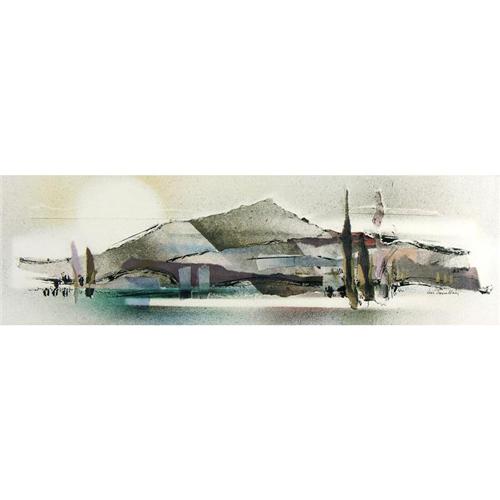 [Canadian b. 1946] LUMINOSITE 8 Mixed media on paper 9 x 29.5 in. Signed & titled.