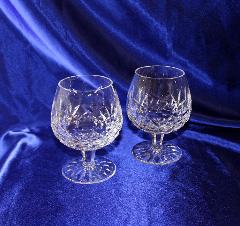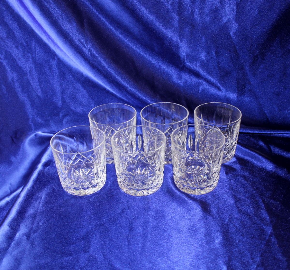 6-whiskey glasses, 2-large brandy glasses, 1-large ships decanter.