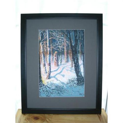 Listed Artist GULBRAND SETHER (1869-1941), Gouche, Winter Glow (Norwegian/American)<p>GULBRAND SETHER, well listed Norwegian/American artist known for snow scenes and nocturnal scenes. This snowy scene in the woods has contrasting dark areas and light snow, emitting a glow of vibrant pink color.<p>LOCATION: Born in Norway, he worked in Illinois (1869 - 1941).<p>The painting is on heavy water color board. It has strong color and a clear signature. It is beautifully framed and ready to hang.<p>SIGNED: Gulbrand Sether <p>SIZE: 21 1/4" x 14 3/8"