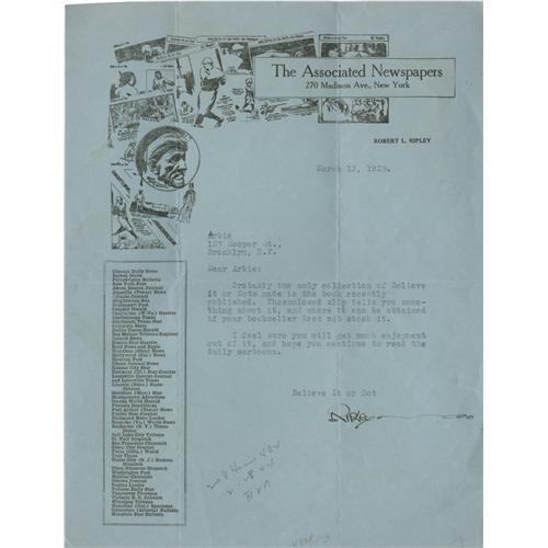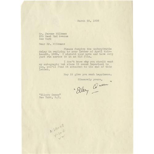 <B>Literary Autograph Collection "Q-R".</B></I> A fabulous collection of autographed material, approximately 80 items, all of famous writers, poets, and educators. Highlights include: Robert Ripley (TLS); John Clark Ridpath (TLS); Elmer Rice (Signature); Eben E Rexford (AMsS); George Ripley (ALS); Sigmund Romberg (Signature); John Rusking (Signed Pen Drawing); Whitelaw Reid (TLS); Jacob A. Riis (ALS); James Whitcomb Riley (AQS); Samuel Rogers (AQS); Henry J. Raymond (ALS); Josiah Quincy (ALS); Ellery Queen (Frederick Dannay- TLS). There are some rare items included here; generally fine condition. From the Henry E. Luhrs Collection. Accompanied by LOA from PSA/DNA.