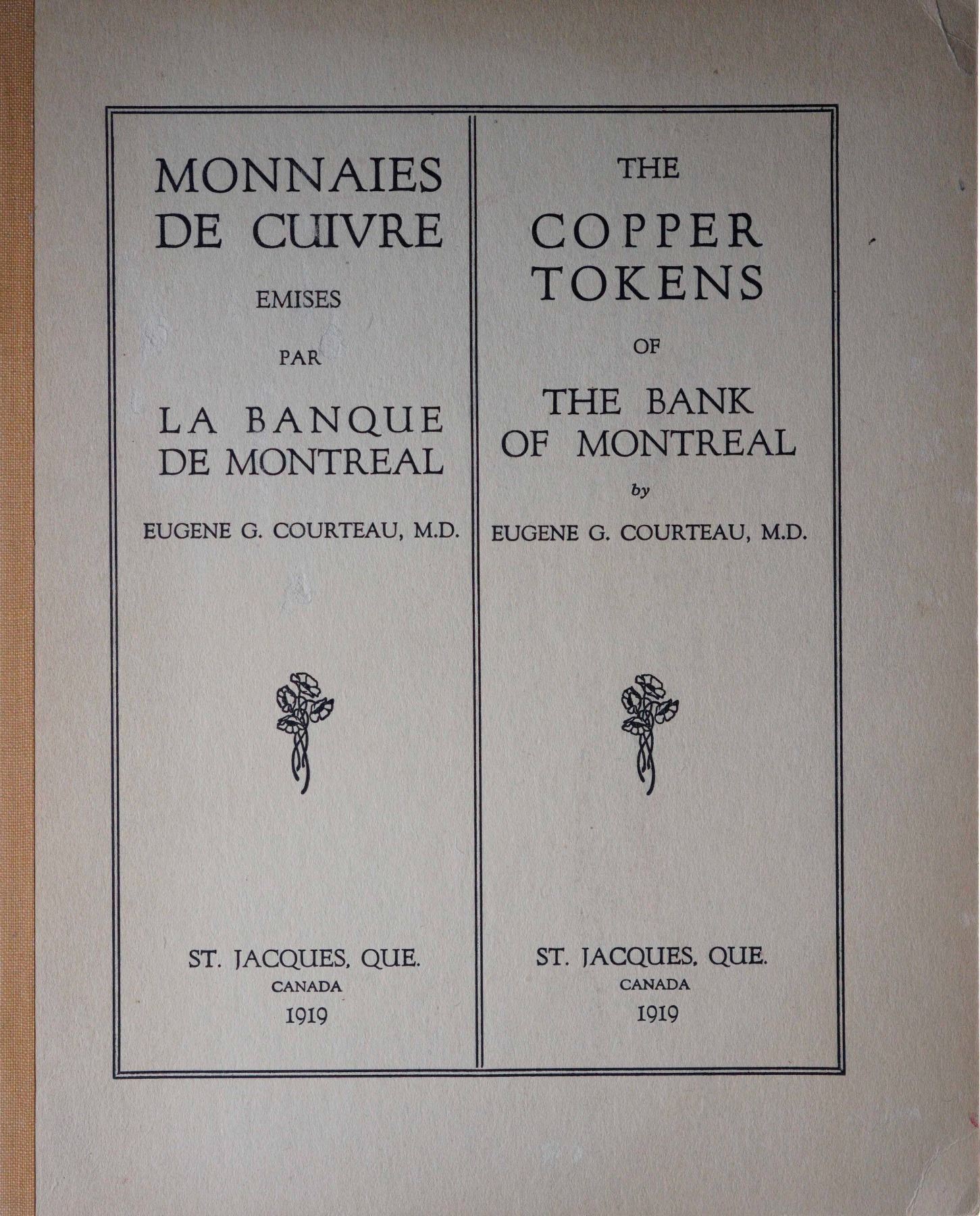 Literature; The Copper Tokens of The Bank Of Montreal by Eugene G. Courteau, 1919, 26 pages, nice original copy.