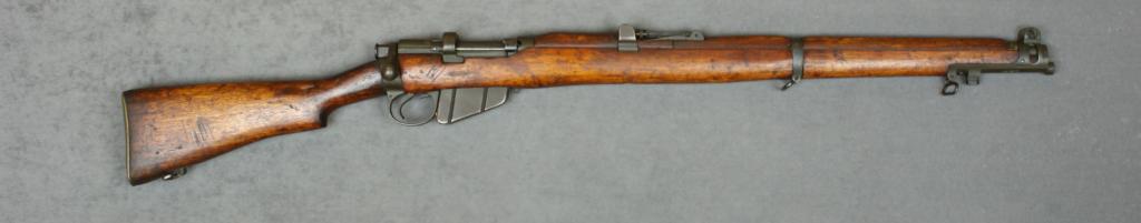 Lithgow Australian Enfield bolt-action military rifle, import marked, .303 cal., 25” barrel, military finish, wood stock, sling swivels, #A68338. This gun is in overall good condition showing muted parkerized militaryfinish, good bore, action, markings and overall good wood with scattered nicks, mars and scratches from carry and storage. Est.: $150-$300.