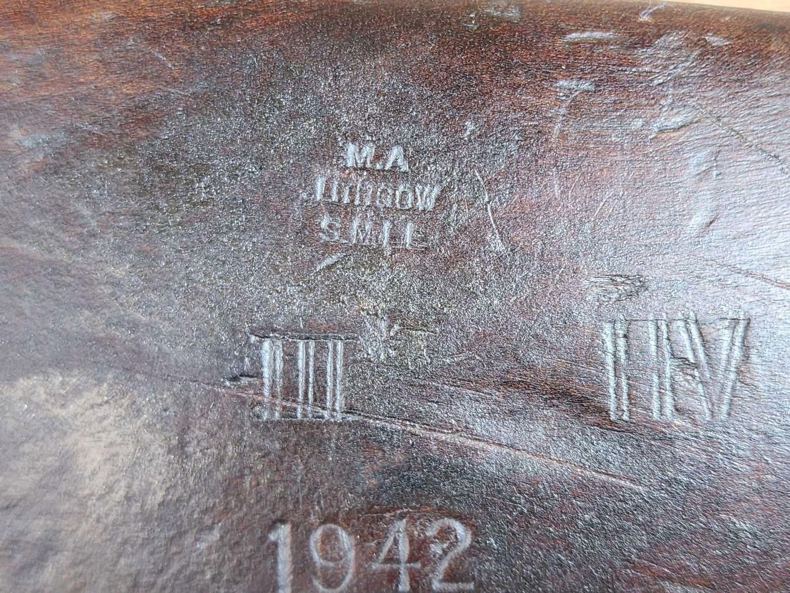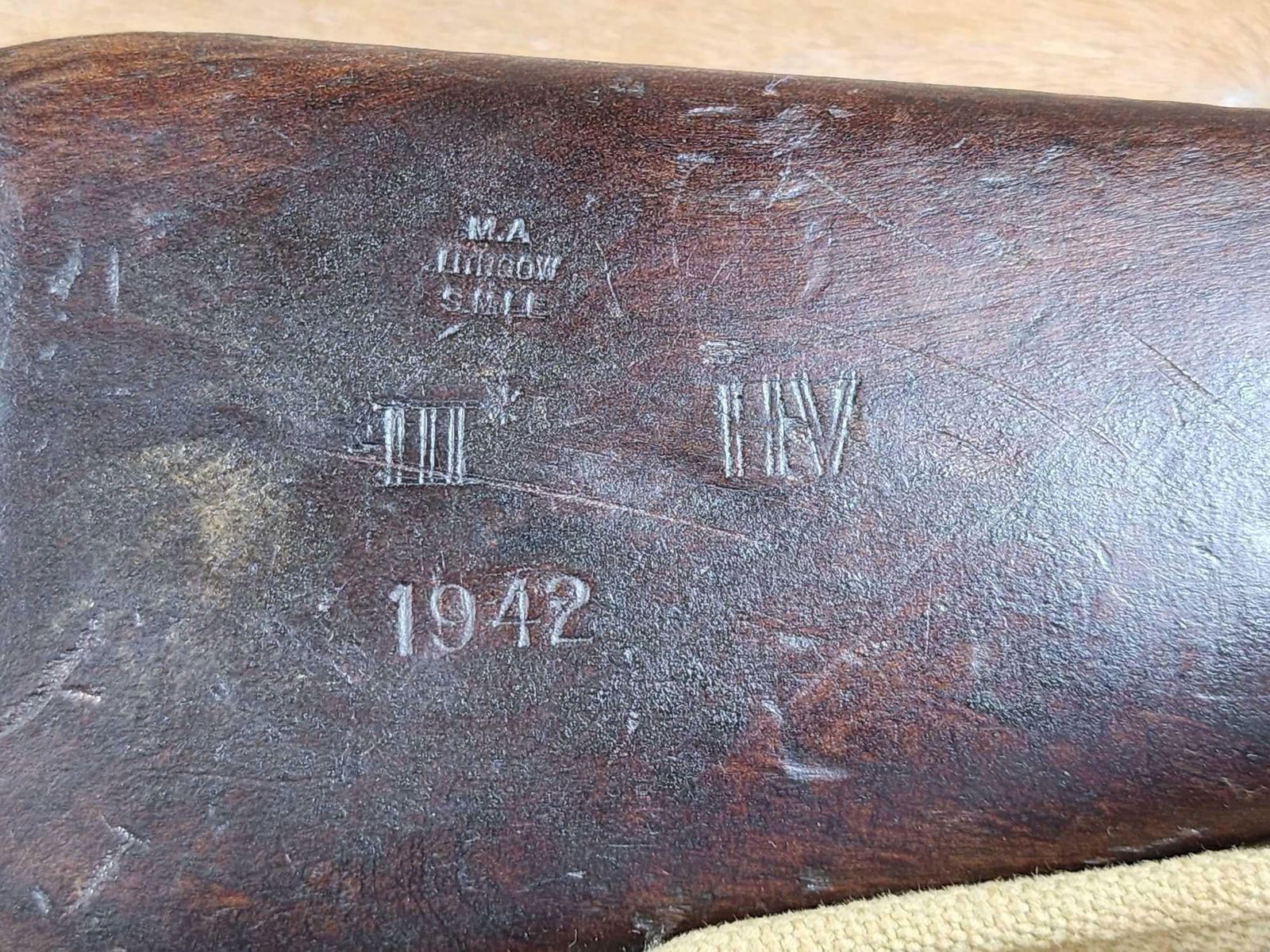 59.1 Mfg 1942 original bolt matching numbers on bolt receiver correct Hugh Carson Co. Ltd sling several markings on stock shiny bore good rifling crisp action overall nice historic gun SN C87899