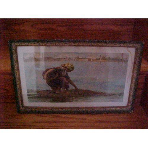 Litho "At The Ebb Of The Tide" by Antonio Paoletti; Tu Gior Venevia; copywrighted 1895 by The Knapp Co., Lith,N.Y. Published by The Amlico, N.Y.; Victorian Frame 12 X 16; some miner water stain on white border, otherwise excellent condition.