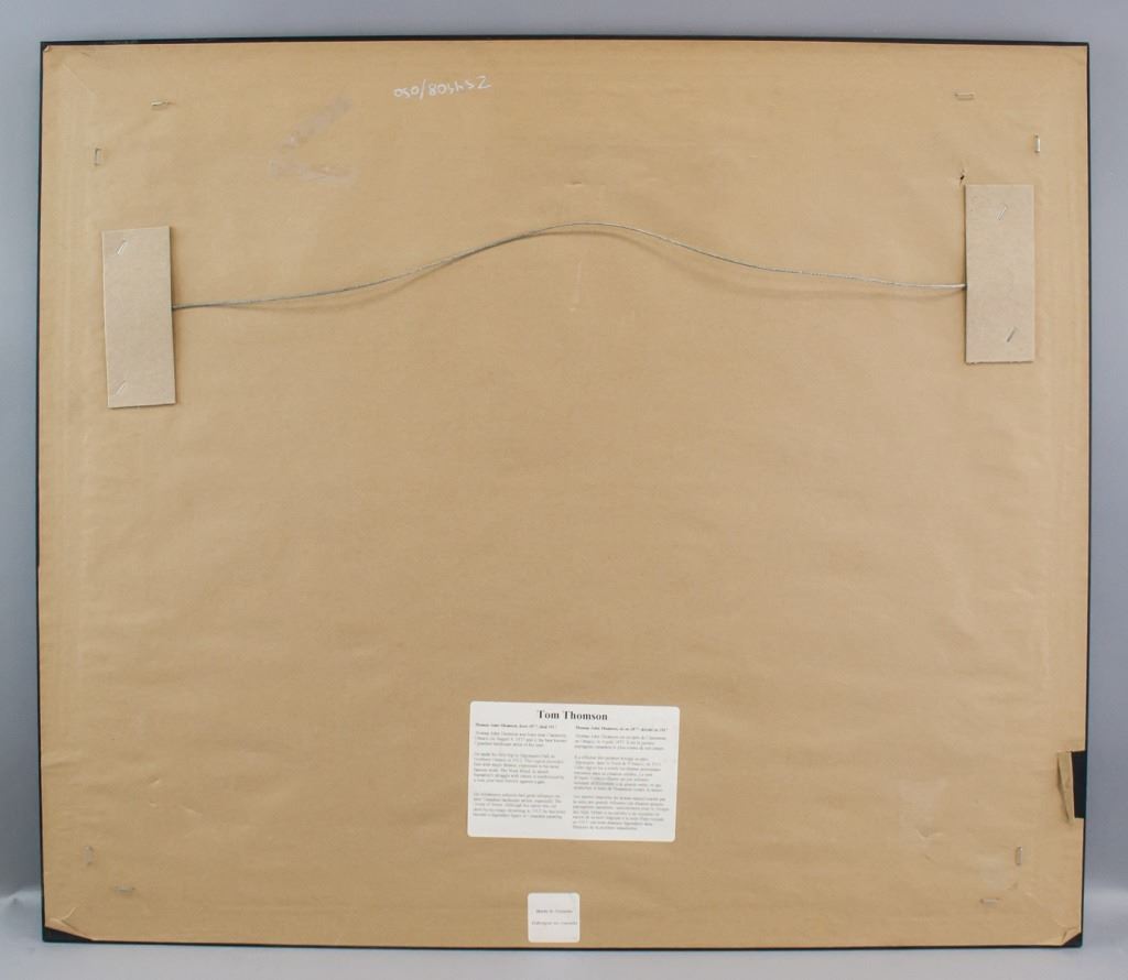 Lithograph on paper, framed. Signed "Tom Thomson" to the bottom right, with seal. Titled "Snow in the Woods". "520/895" inscribed to the bottom left. Label on verso gives biography of Tom Thomson. Paper size: 49 x 59 cm (19.3 x 23.3 inches). Frame size: 68 x 78 cm (26.7 x 30.7 inches).