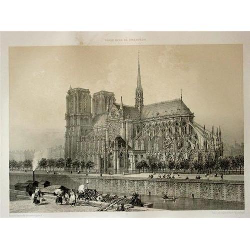 Beautiful lithograph entitled "Notre Dame, Facade laterale du Midi," number 30, one of the series "Paris Dans sa Splendeur." The text on the lithograph reads as follows: "Nantes, lith. Charpentier, Edit. - Paris, quai des Augustins, 55. Fichot lith. d'apres la Photoie. Fig par Bayot" One of a series of six listed separately. In good used condition with toning and foxing consistent with age as shown. Please ask questions, request photos and shipping costs before buying.