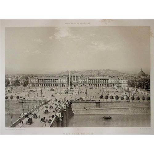 Beautiful lithograph entitled "Place de la Concorde prise du Corps Legislatif," number 60 bis, one of the series "Paris Dans sa Splendeur." The text on the lithograph reads as follows: "Nantes, lith. Charpentier, Edit. - Paris, quai des Augustins, 55. Ph. Benoist del. et lith." One of a series of six listed separately. In good used condition with toning and foxing consistent with age as shown. Please ask questions, request photos and shipping costs before buying.