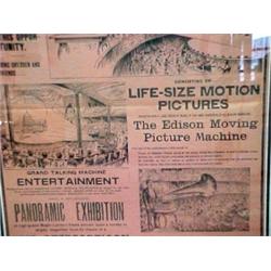 Lithograph, Rave Advertising poster for the first motion picture machine by Thomas Edison (The Edison Moving Picture Machine), image measures 23" x 17" Estimate 200/400