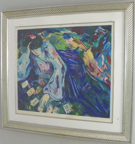"The Fortune Teller", mounted in silver frame. Approx. 28" x 32.5" image. Please read our terms of sale.