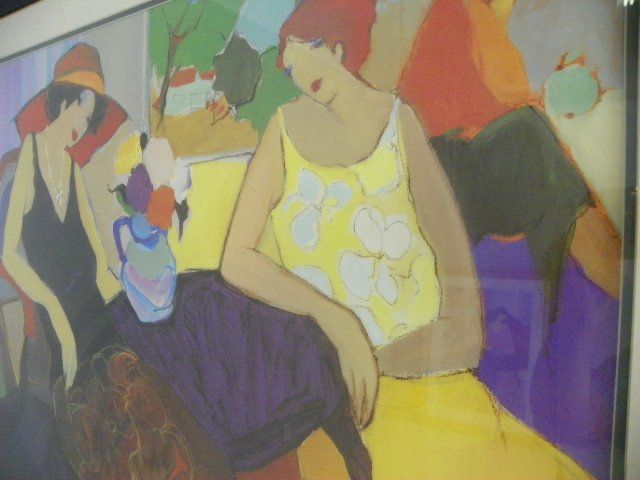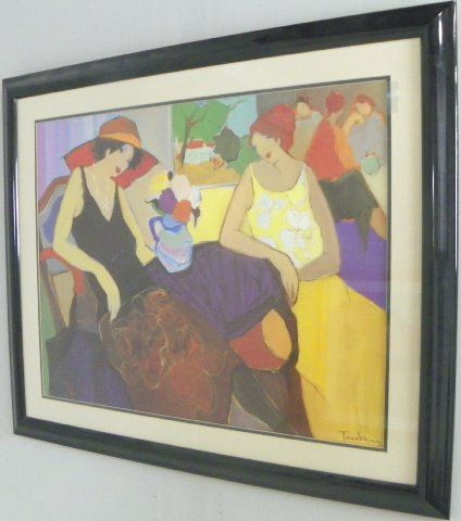 "Relationship" depicting "Two Seated Women", mounted in black frame. Approx. 29" x 23" image. Please read our terms of sale.