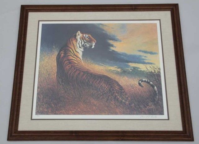 Lithograph published by Petersen Prints, Los Angeles 528 of 800 hand signed lower right Edward J. Bierly and dated 1978 in block. The print measures approx. 19”x23” shows tiger and snake. Est. $100-$300