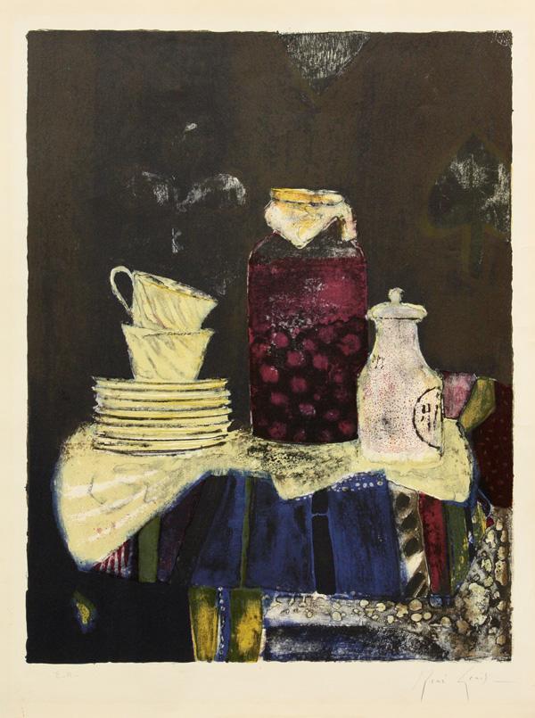 (Lot of 3) Unframed color lithograph, Abstract Still Lifes, by Rene Genis (French, 1922-2004) and Pierre Bisiaux (French, b. 1924), each signed in pencil lower right, each artists proof, largest overall: 25''h x 30''w
