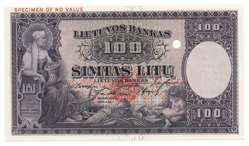Lithuania - Specimen 100 Litu (1928)