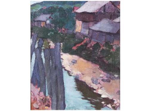 Litteczky, Endre (Szatmárnémeti, 1880 - Szatmárnémeti, 1953 ) - Houses at the Stream