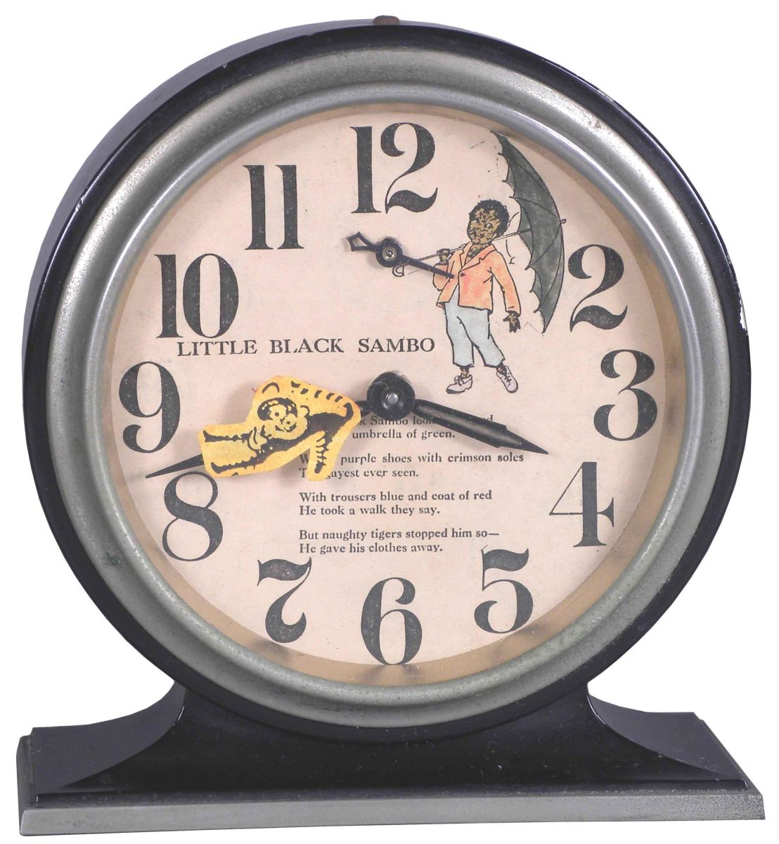Little Black Sambo Alarm Clock, patented 1931. With characters and poem. Very good working condition. 5 X 5 1/2 X 2 inches. Start Price $50
