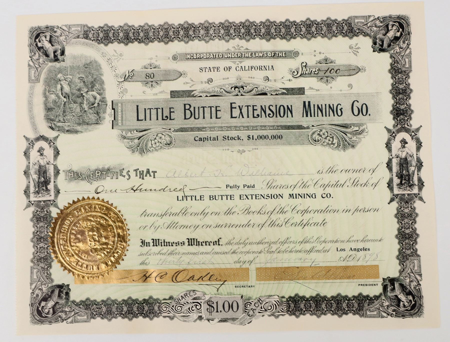 Little Butte Extension Mining Co. Stock Certificate, 1898, So. California Desert [198000]