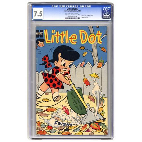 <B>Little Dot #3 (Harvey, 1954) CGC VF- 7.5 Cream to off-white pages.</B></I> Includes Richie Rich and Little Lotta backup stories. Overstreet 2006 VF 8.0 value = $281. CGC census 3/06: 2 in 7.5, 3 higher.