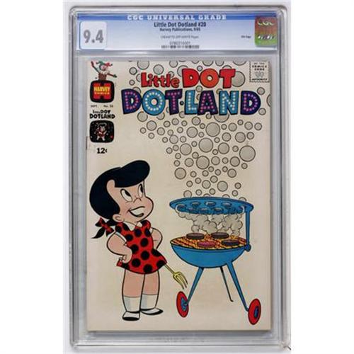 <B>Little Dot Dotland #20 File Copy (Harvey, 1965) CGC NM 9.4 Cream to off-white pages.</B></I> Only copy on the current CGC census. Overstreet 2007 NM- 9.2 value = $38. CGC census 10/07: 1 in 9.4, none higher.<BR><BR><b>Shipping:</b> Comics - Slabbed (certified) (<a target="_blank" href="http://www.heritageauctions.com/common/shipping.php">view shipping information</a>)