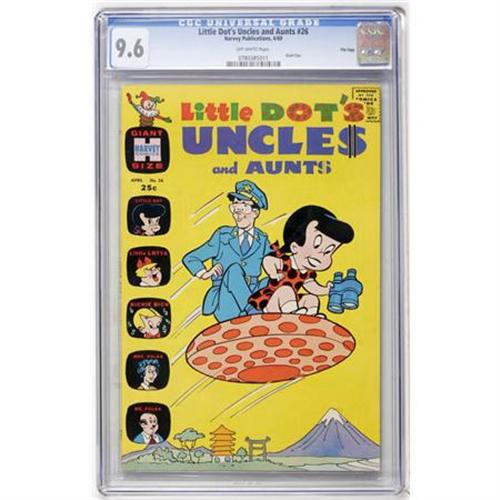 <B>Little Dot's Uncles and Aunts #26 File Copy (Harvey, 1969) CGC NM+ 9.6 Off-white pages.</B></I> Giant size issue. Overstreet 2007 NM- 9.2 value = $30. CGC census 12/07: 1 in 9.6, none higher.<BR><BR><b>Shipping:</b> Comics - Slabbed (certified) (<a target="_blank" href="http://www.heritageauctions.com/common/shipping.php">view shipping information</a>)