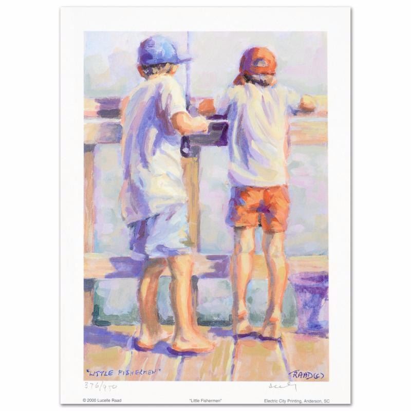 "Little Fishermen" is a limited edition lithograph on paper, numbered and hand signed by Lucelle Raad! Measures approx. 6" x 8" (with border); 5" x 7" (image). PRICE INCUDES FREE SHIPPING IN THE U.S. - SHIPPING WILL BE ADDED TO YOUR INVOICE FOR ALL BUYERS OUTSIDE OF THE U.S.