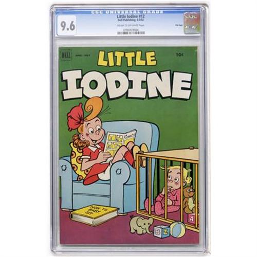 <B>Little Iodine #12 File Copy (Dell, 1952) CGC NM+ 9.6 Cream to off-white pages.</B></I> Overstreet 2007 NM- 9.2 value = $55. CGC census 12/07: 2 in 9.6, none higher.<BR><BR><b>Shipping:</b> Comics - Slabbed (certified) (<a target="_blank" href="http://www.heritageauctions.com/common/shipping.php">view shipping information</a>)
