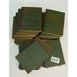 3 3/4" by 3" Little Leather Library, set of 24 books. Irish Melodies, On Going to Church, Tillylass Scandal, Memories of Pres Lincoln, Lancelot & Elaine, Old Christmas, Hiawatha Vol 1 & 2 and others. Books with green binding of leather, pub in NY, no dates VG Cond.