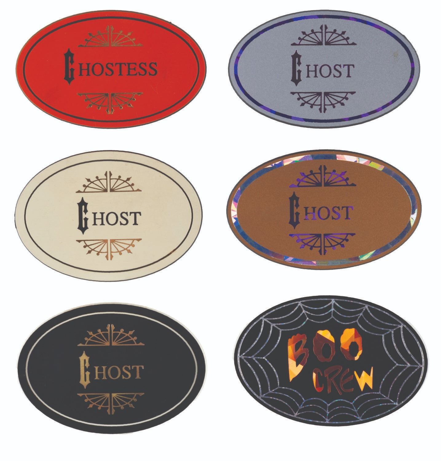 (Disneyland, 1989-2004) A collection of six name badges worn by Cast Members during the Little Monsters on Main Street annual Halloween event. Measuring 1.5” x 2.5” each, the name badges are in good to very good condition with scuffs, scratches, and wear from Park use.