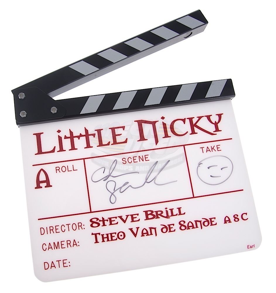 (New Line, 2000) This clapperboard was autographed by Adam Sandler after filming. It is unclear whether or not this clapperboard was used during filming, as it is in near perfect condition. Accompanied by a New Line COA confirming that it was an original artifact from the production.