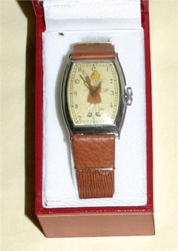 Vintage Little Orphan Annie character watch - Harold Gray. Made in U.S.A. Wear to back and crystal. Replaced leatherette band. New box.
