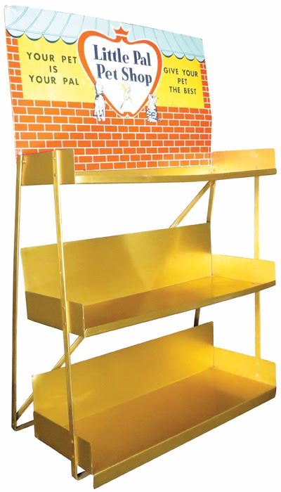 Little Pal Pet Pet Shop Tin Store Shelf Display. Crease at top right corner otherwise very good condition. 19 1/4 X 13 X 13 inches.