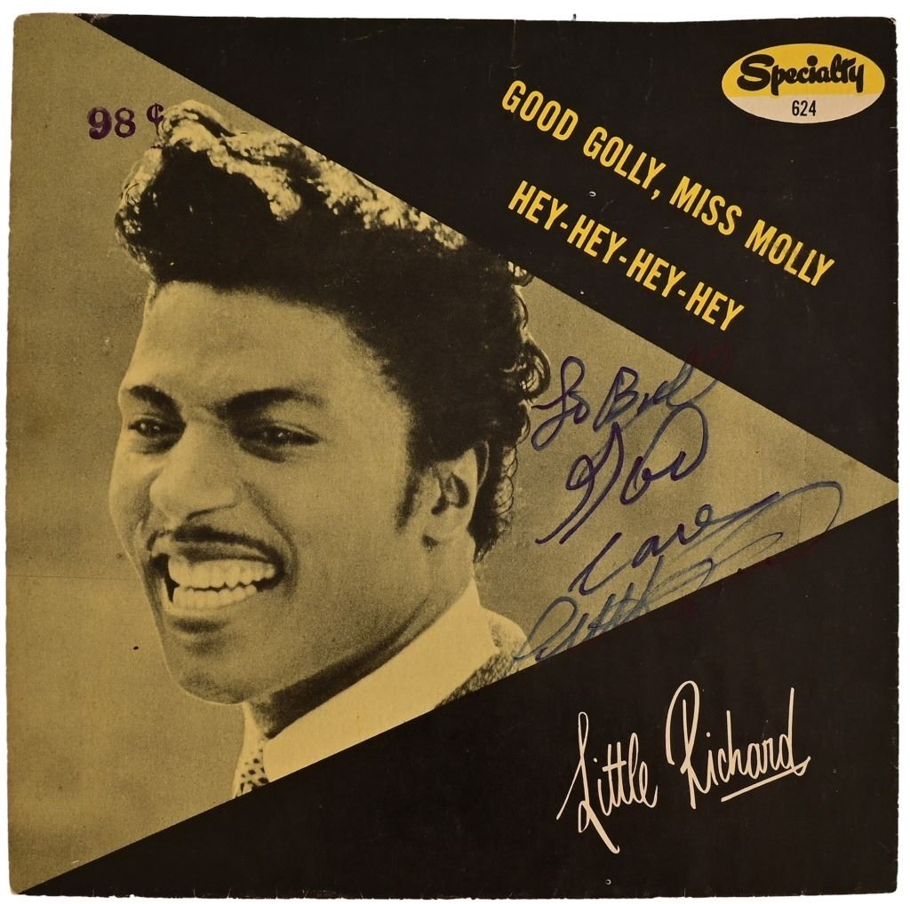 Good Golly Miss Molly 45 record cover autographed by Little Richard. 7x7 inches. PSJ333