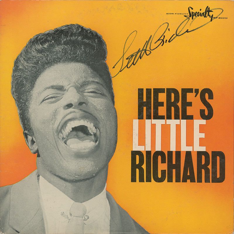 Here’s Little Richard album signed on the front cover in black felt tip. Scattered light wear and rubbing to cover and a few edge dings, otherwise fine condition. The record is included.