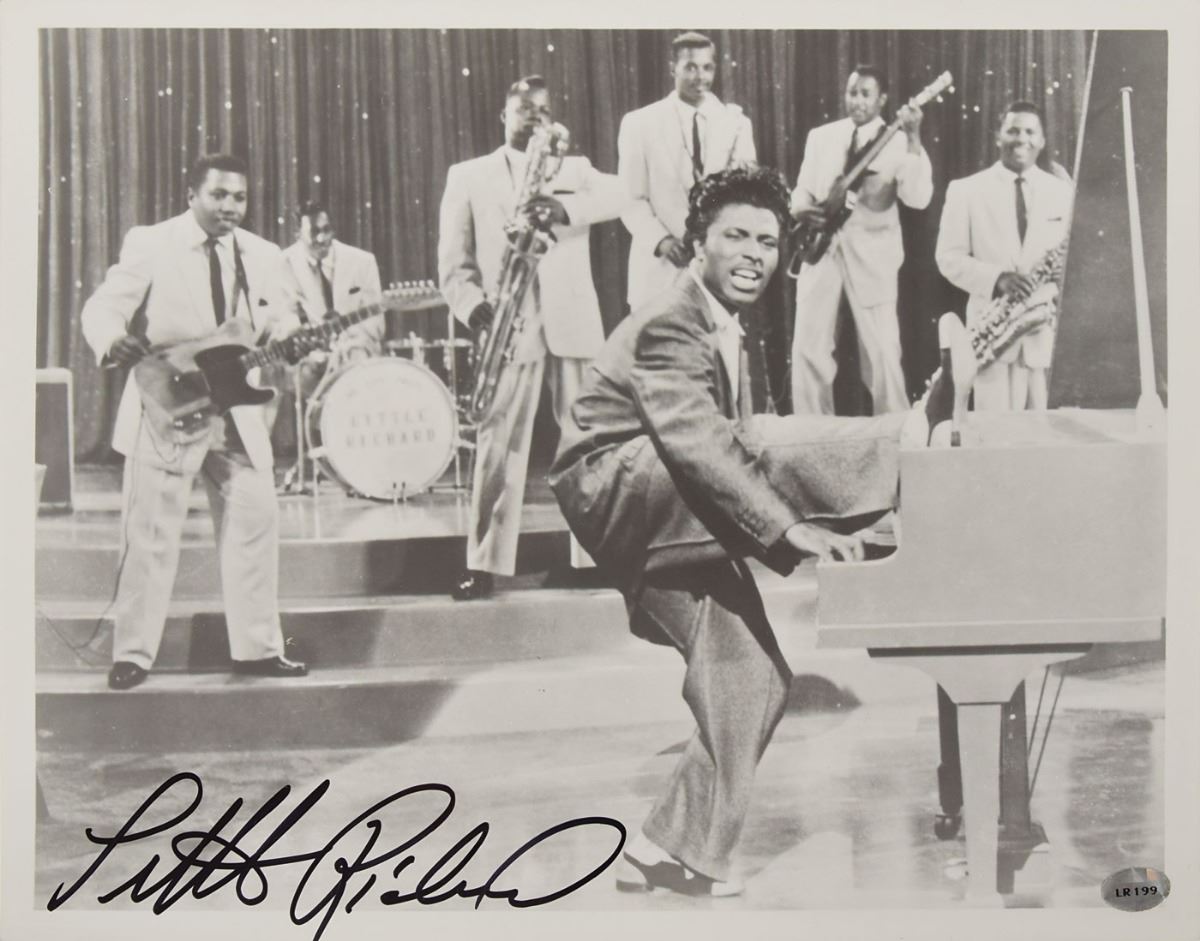 Choice glossy 10 x 8 photo of Little Richard enthusiastically playing the piano with his typical showmanship, signed in black felt tip. In fine condition. Accompanied by a full letter of authenticity from PSA/DNA.