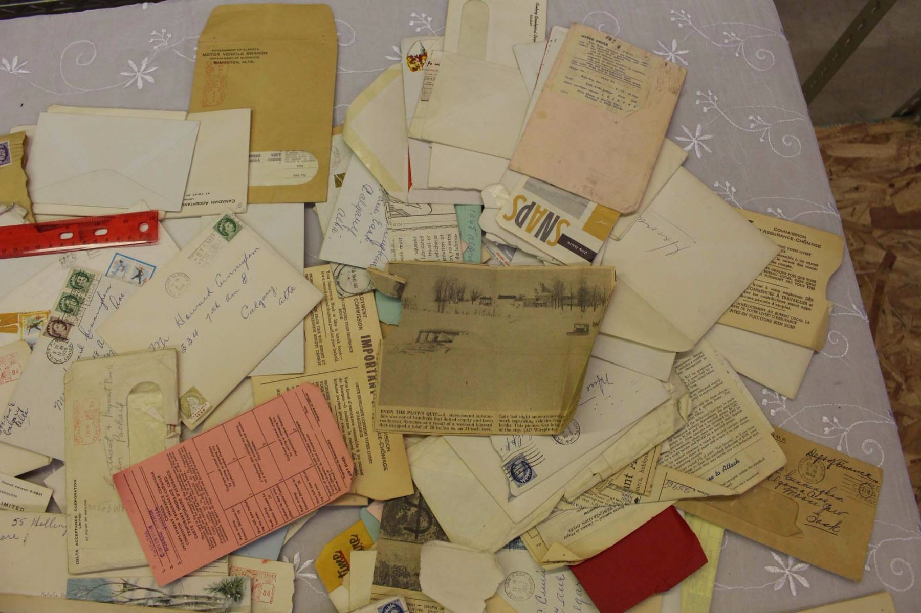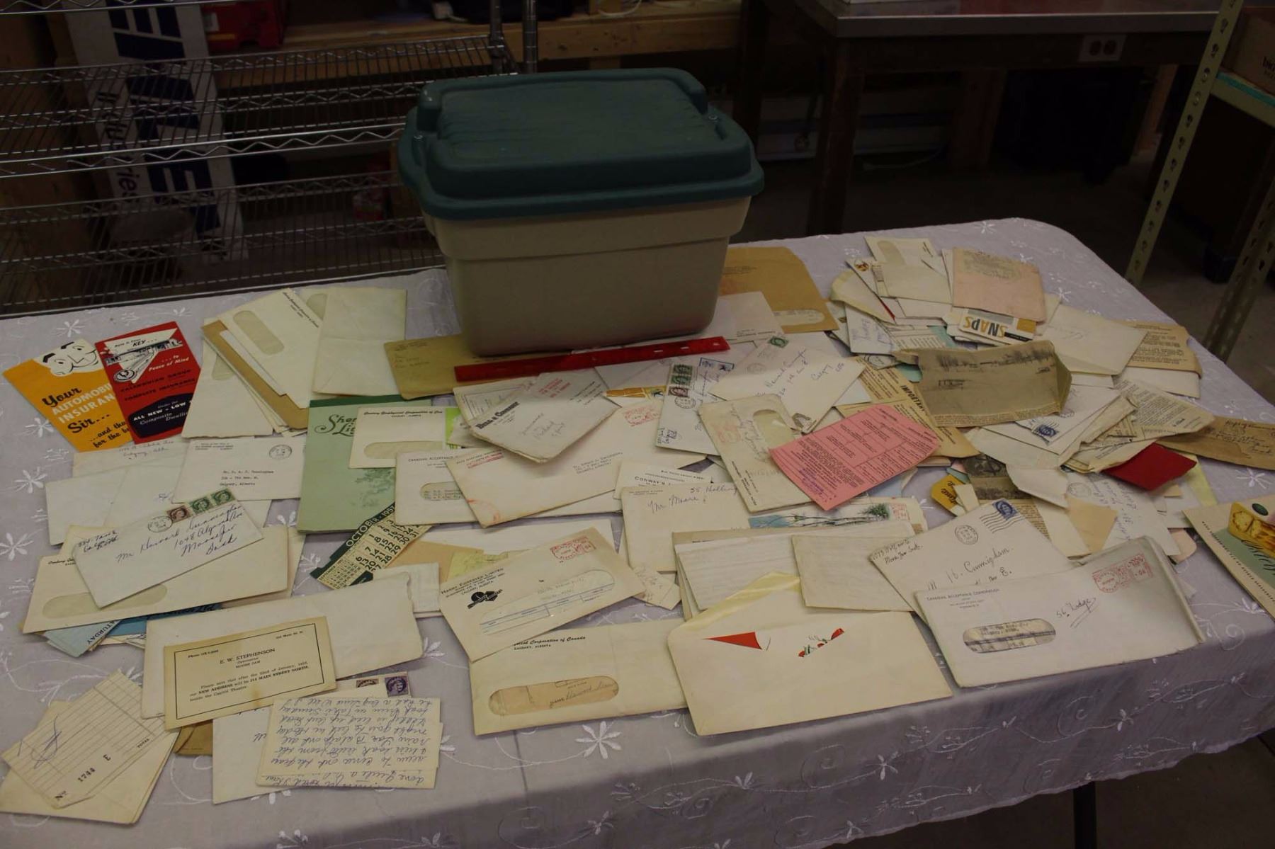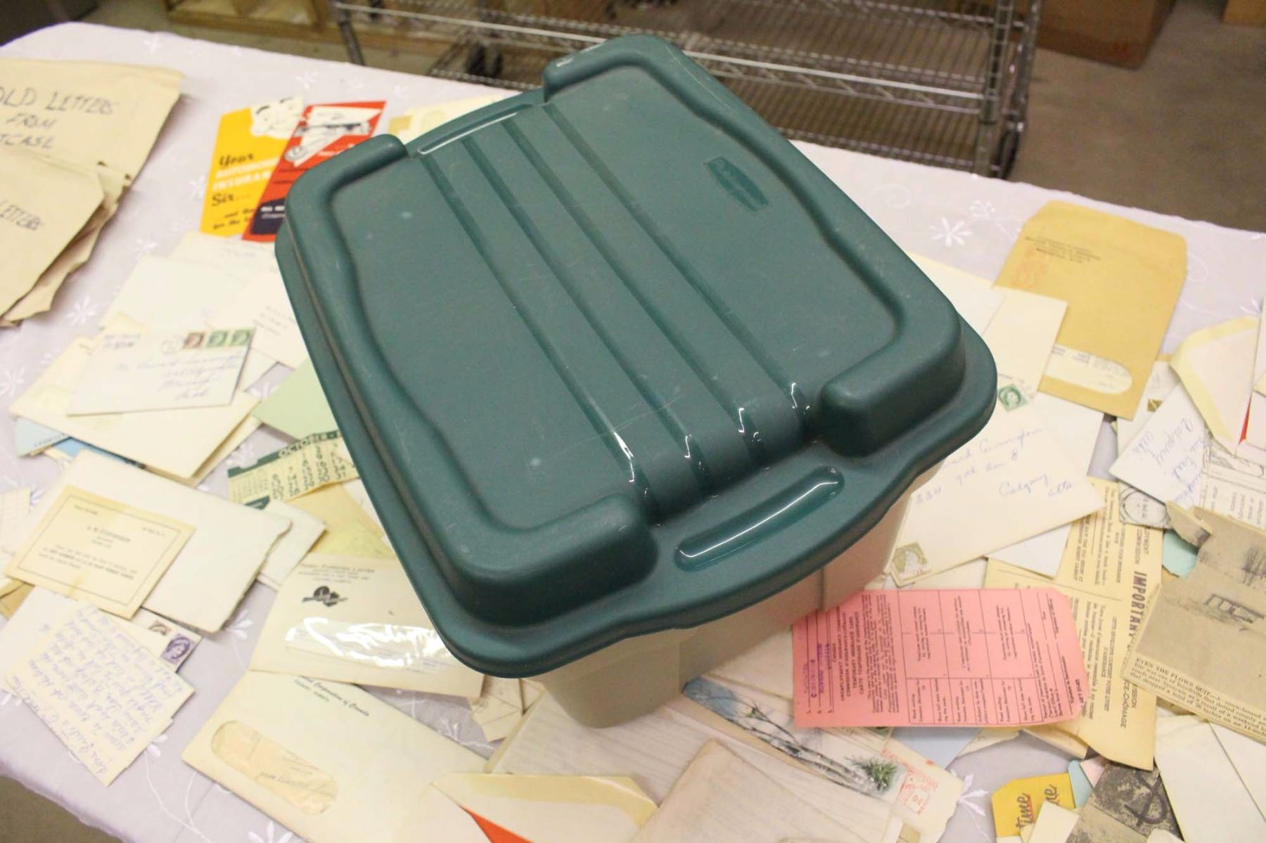Little Rubbermaid Tub w/1950's Envelopes w/Letters, Cards, Advertisements, Etc