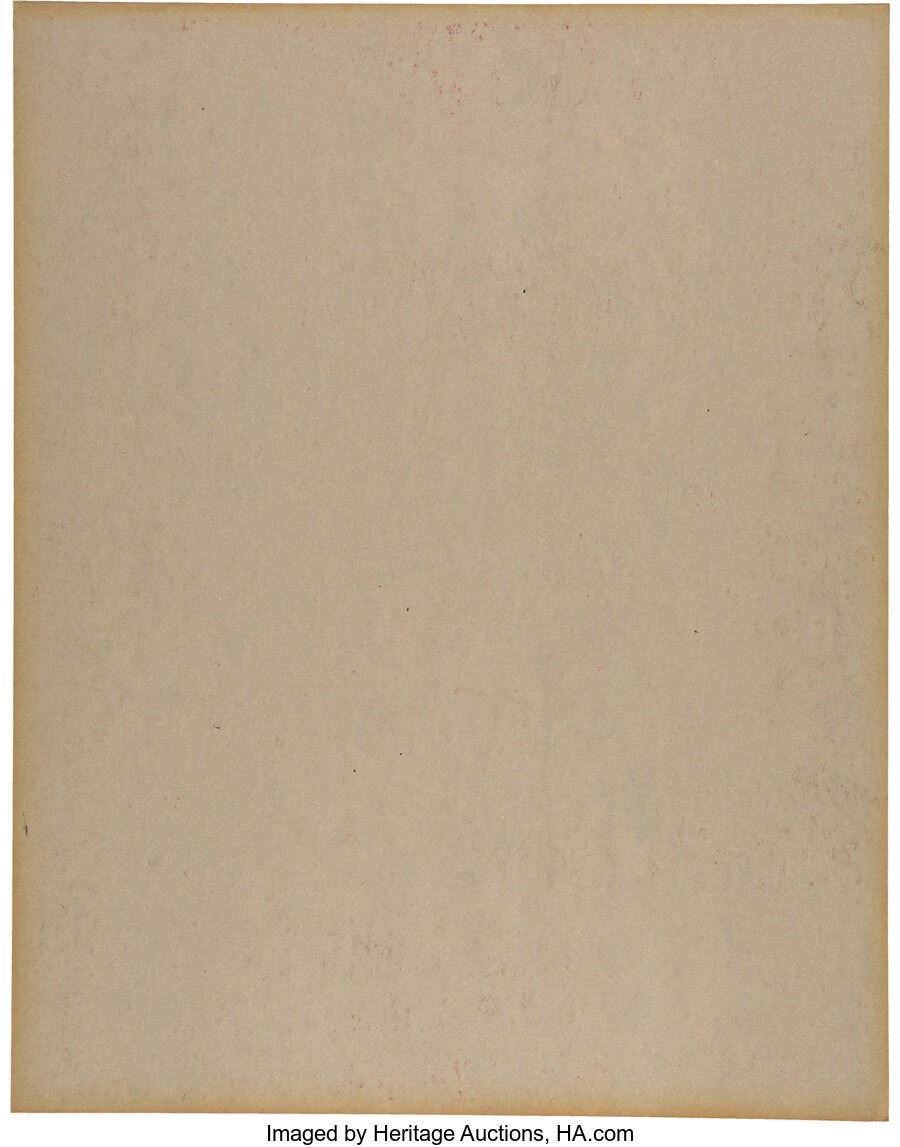 Heritage Auctions strongly encourages in-person inspection of lots by the Bidder. While Heritage is not obligated to provide a condition report of each lot, Bidders may feel free to contact the department for a Condition Report, and Heritage will attempt to furnish one, but shall not be liable for failing to do so. Condition is often detailed online, but is not included in our catalogues. The Bidder should review online descriptions, as the descriptions supersede catalog descriptions and any condition reports otherwise provided. Heritage condition statements whether appearing in the catalog, online, or at a person?s request are based on a visual inspection and are for guidance only and should not be relied upon as statements of fact, and do not constitute a representation, warranty, or assumption of liability by Heritage. Please note that we do not de-frame lots estimated at $1,000 or less and may not be able to provide additional details for lots valued under $500. All lots offered regardless of a condition report are sold ?AS IS?.