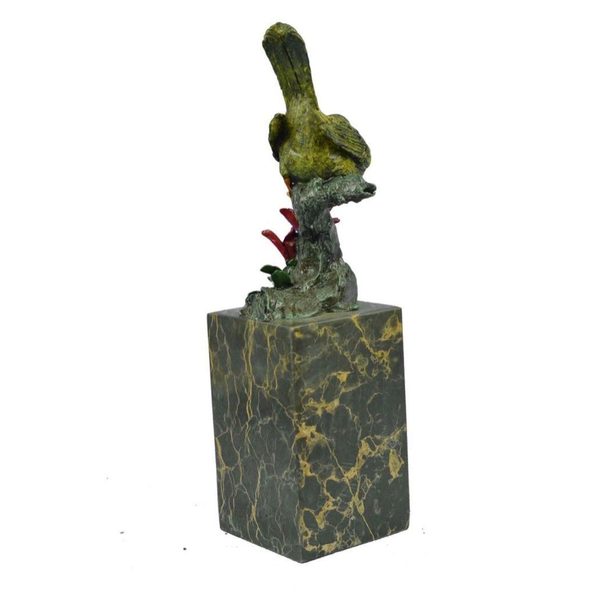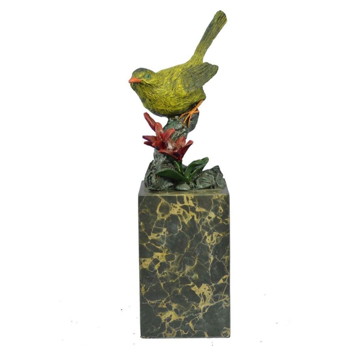 Little Yellow Bird hand-painted lost wax casting bronze sculpture, mounted on marble plinth. 11" H X 5" W. 5lbs.