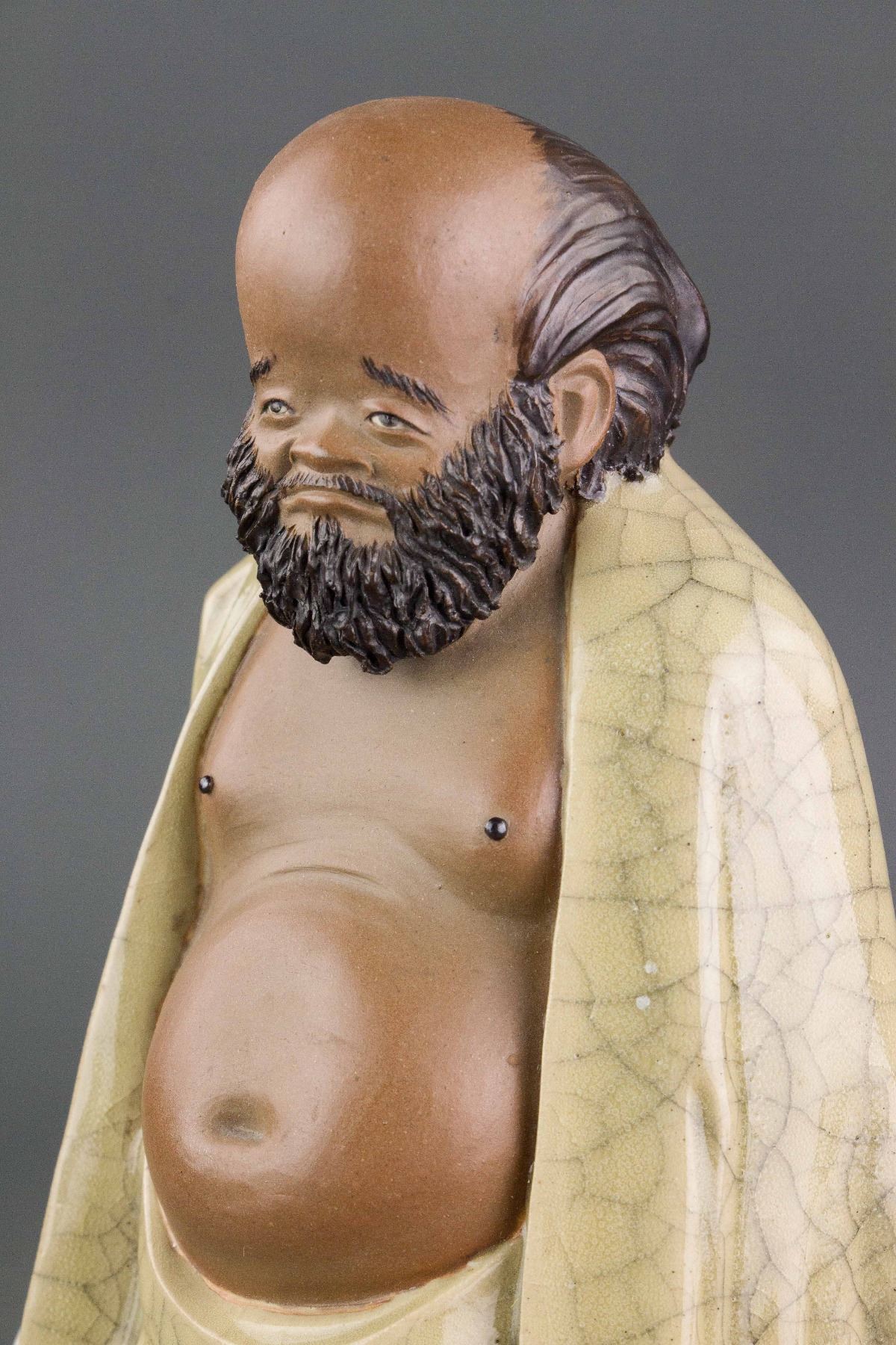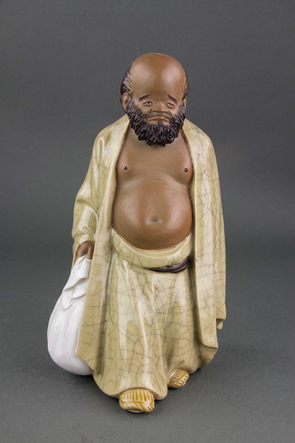 Bu Dai Shan Ren, hermit with cloth bag; Chinese pottery figure; made by Liu Chuan (1916-2000); H: 24 cm, W: 13 cm, L: 12 cm, 1443 grams. PROVENANCE: Private collection (Nagoya, Japan)