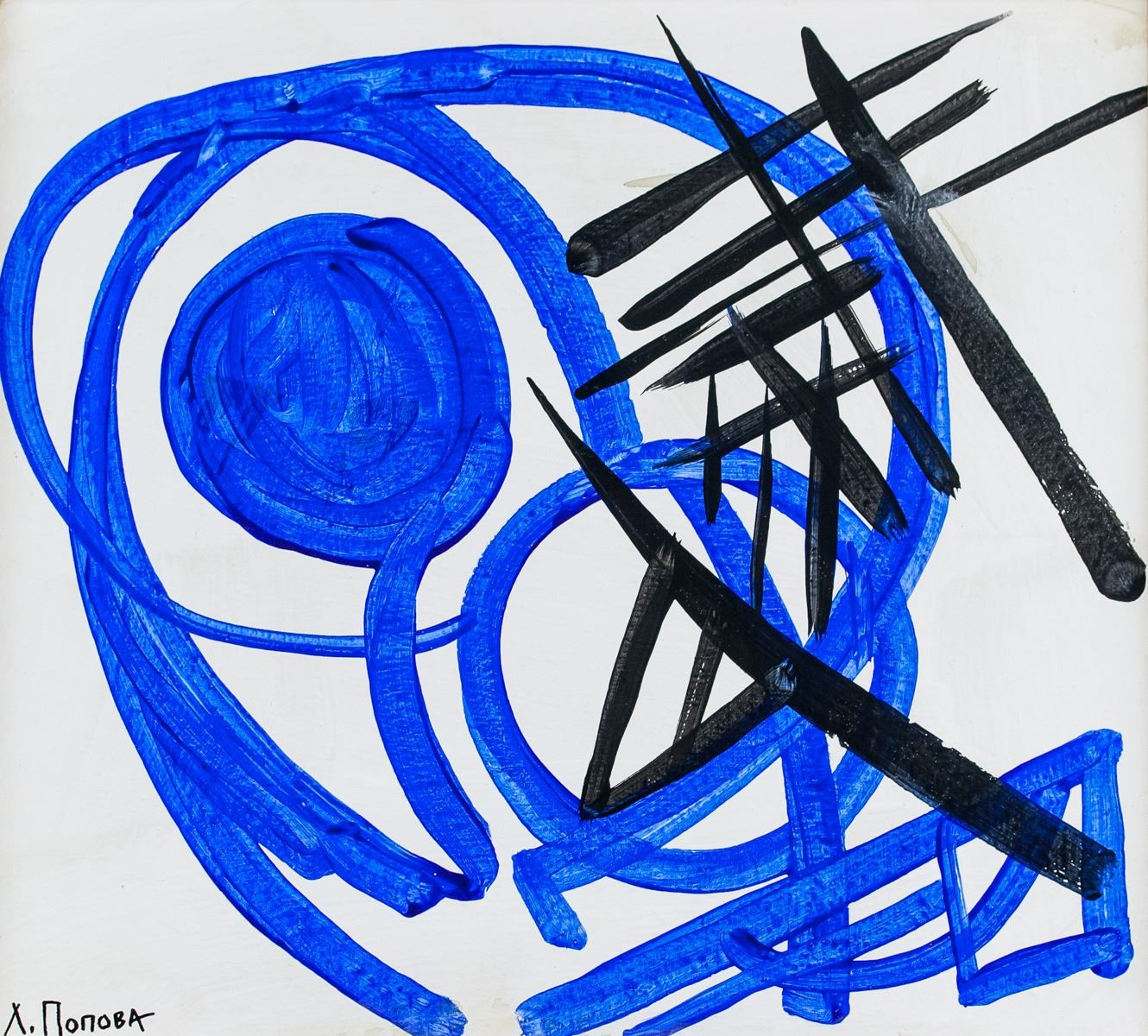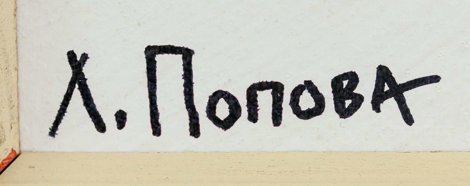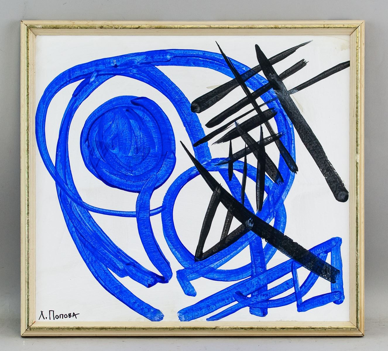 Oil on canvas, stretched and framed. Featuring an abstract expressionist composition. Signed in Cyrllic on the lower left corner. Attributed to Liubov Popova (Russian, 1889-1924). 38 x 42 cm (15.0 x 16.5 inches). PROVENANCE: Southern Ontario estate