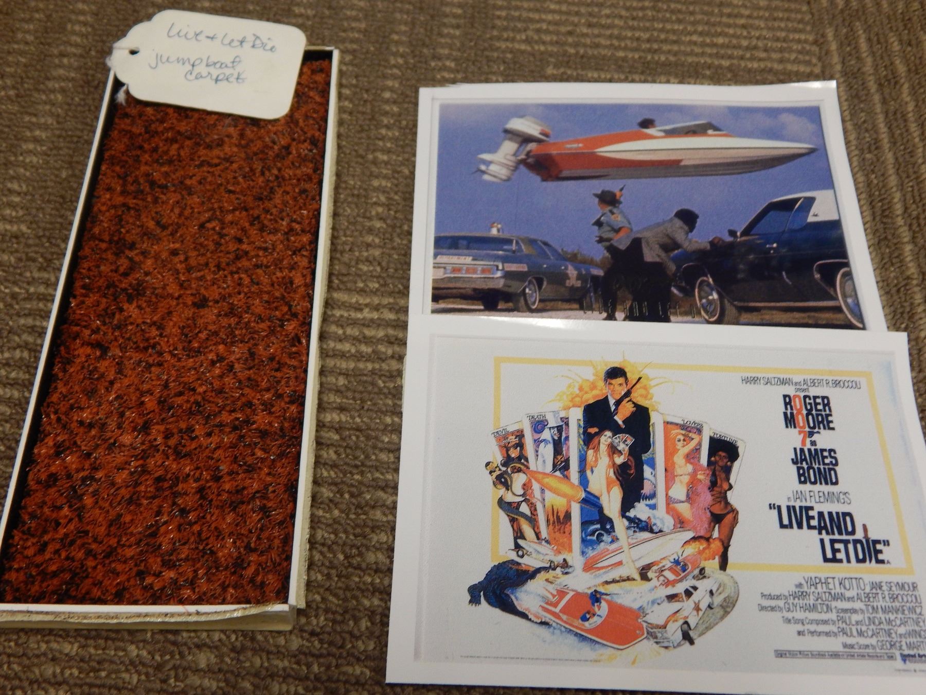 Original piece of carpet from the jumpboat from the James Bond film Live and Let Die. All items come with a certificate of authenticity good for the life of the piece.