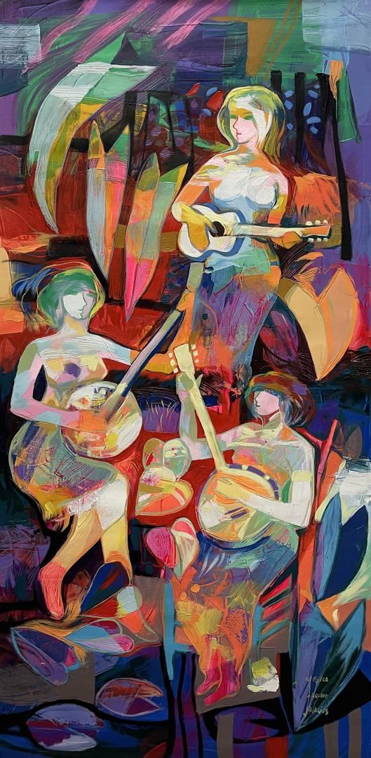 Beautiful original oil on canvas. Hand signed by artists. Artwork comes with a certificate of authenticity. This artwork comes rolled. Size 28x58"