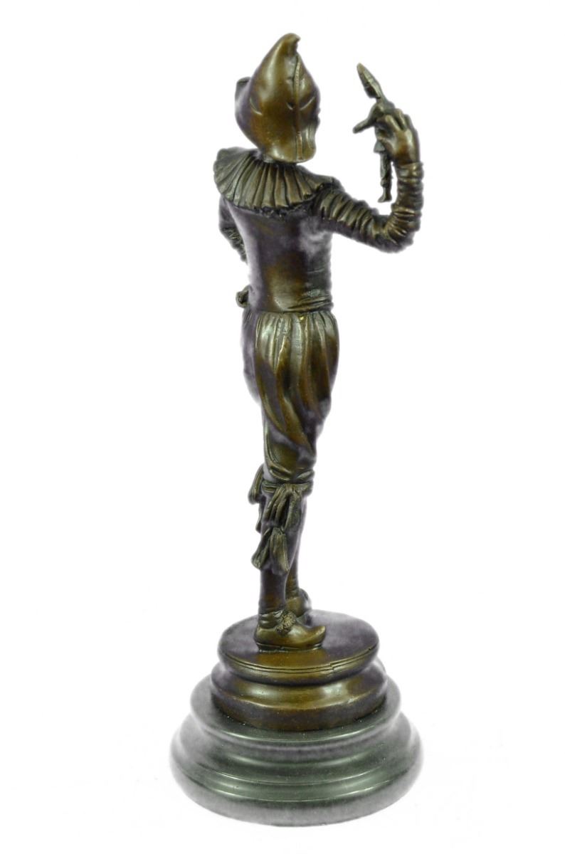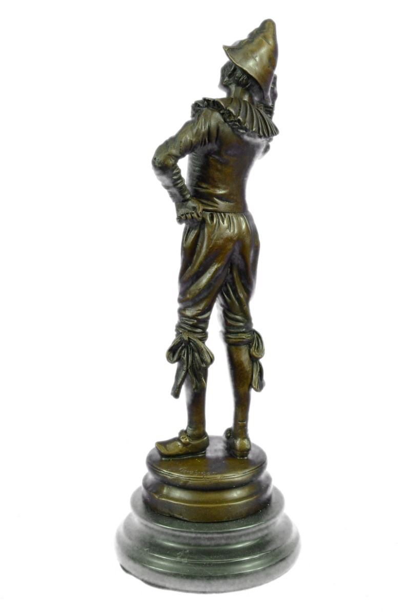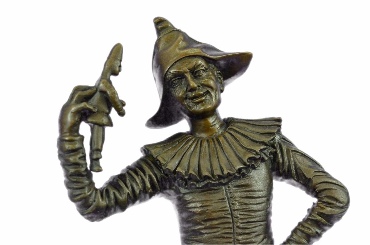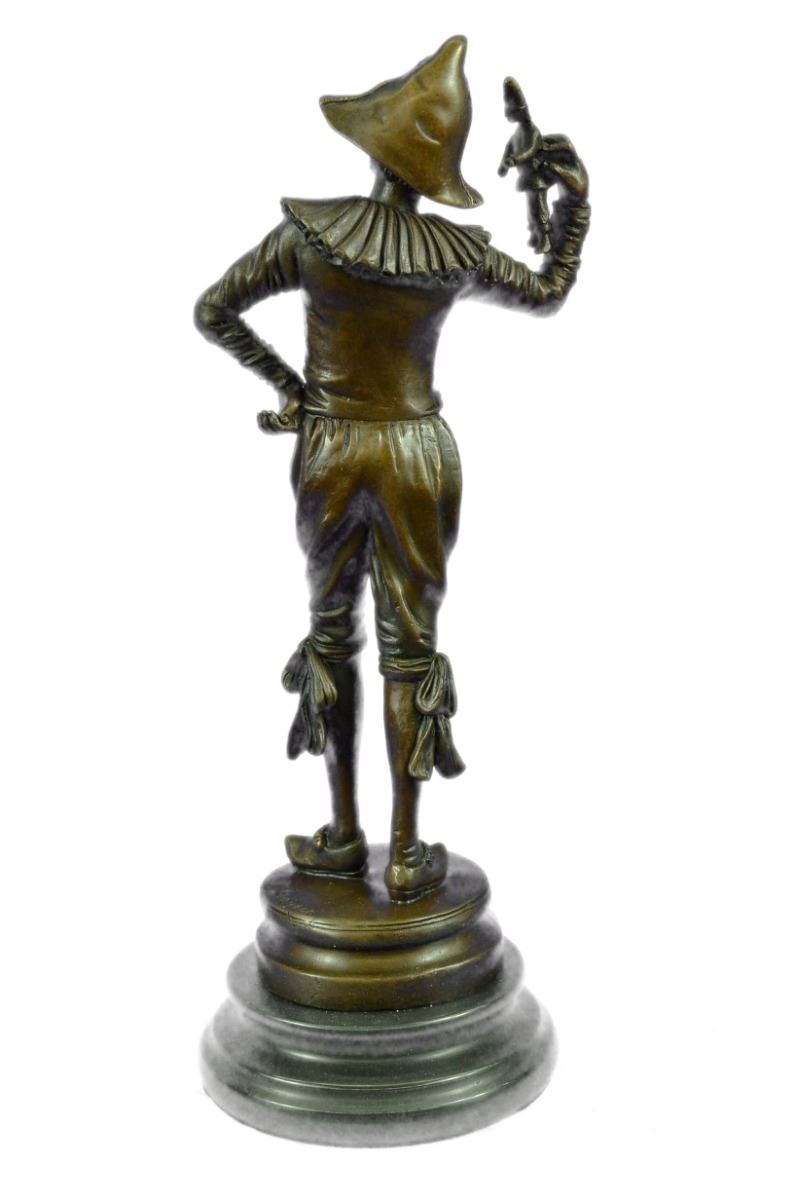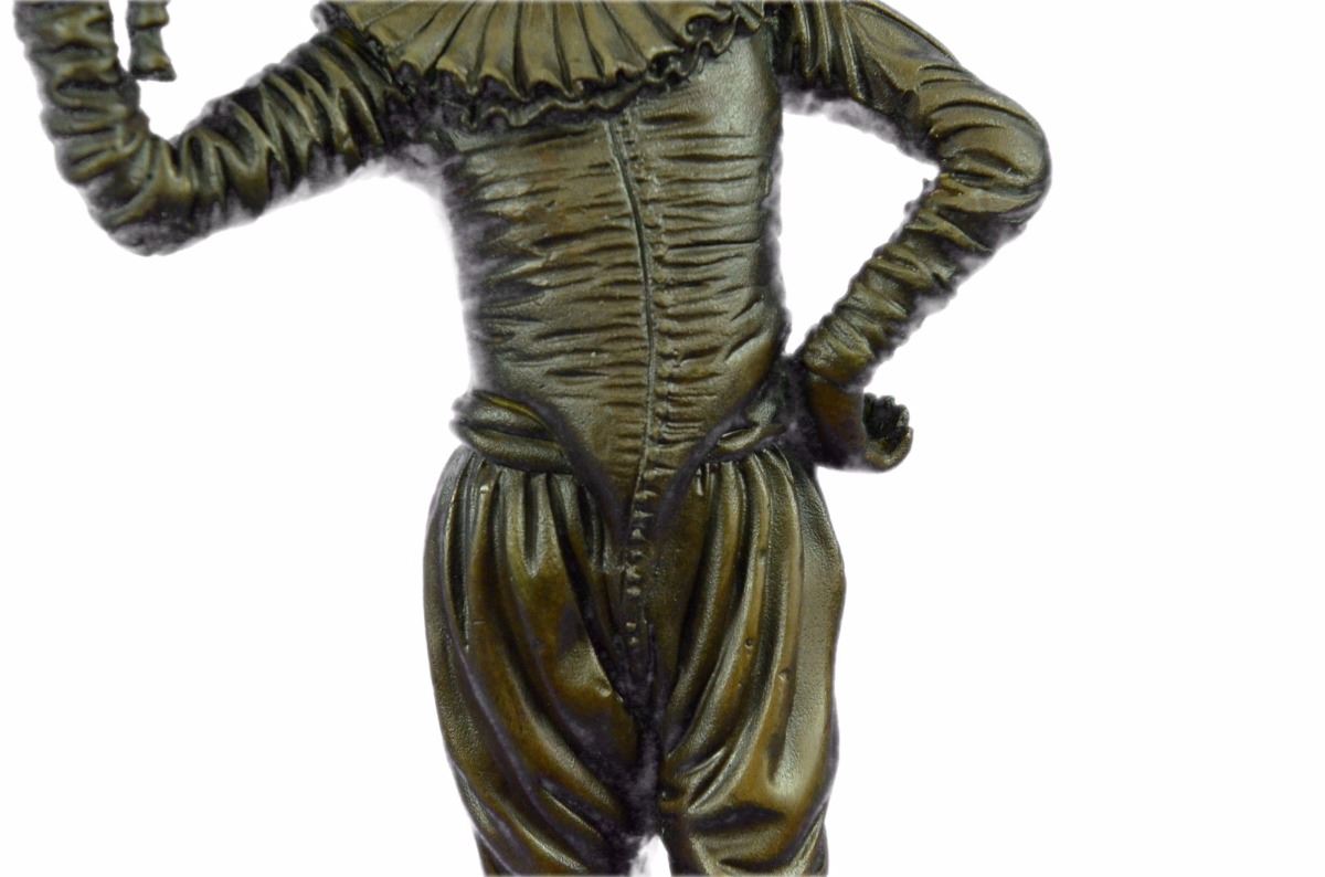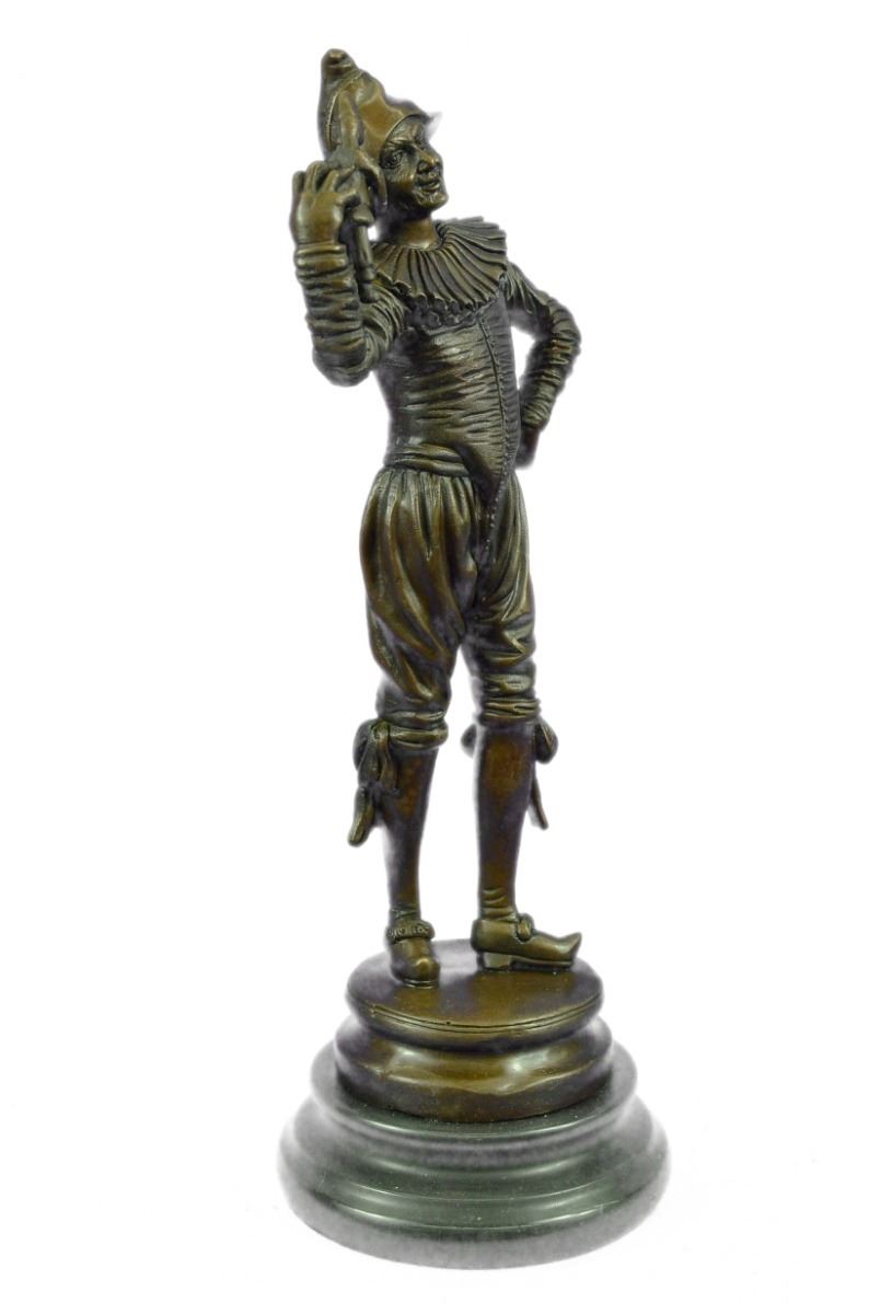 This Lively Dancing Jester Is Depicted In The Art Deco Style Inspired By The Work Of The Prominent Sculptor Gueyton . Hunched Backed Jester Claims Immunity To The Jibes Of His Hunchbacked Zany. Often These Clever, Royal Clowns Would Exert Great Influence On Their Patrons, And Add A Wonderful Touch To Any Space. The Handmade Bronze Sculpture Was Molded Using The Ancient Method Of Lost-Wax Casting And With Skin Tones Stained With A Brown Patina Finish For Preservation. It Is Mounted Upon A Black Marble Base. Bronze Dimensions With Marble Base: Height 14 X Width 5 inches. Weight: 7 Lbs. This Is Not An Original Of His Work But A Recent Reproduction.