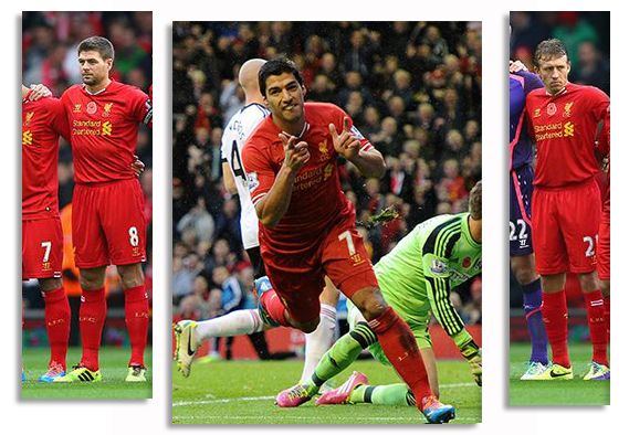 Lot of 3 Liverpool ''poppy'' soccer jerseys, each worn for a football match against Fulham on 9 November 2013 and signed by the Liverpool players. Signatures include Steven Gerrard, Lucas Leiva and Luis Suarez. Home shirt incorporates a poppy design in observance of Remembrance Sunday and Armistice Day. Near fine. With a COA for each from the Liverpool club. Provenance is from a charity auction benefiting The Royal British Legion, which provides support to the armed forces and their families.
