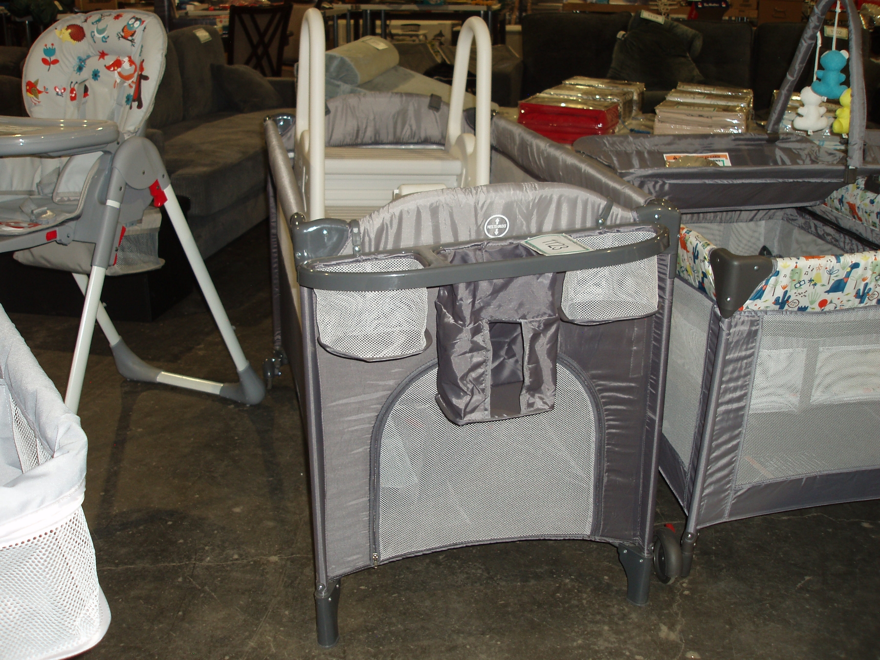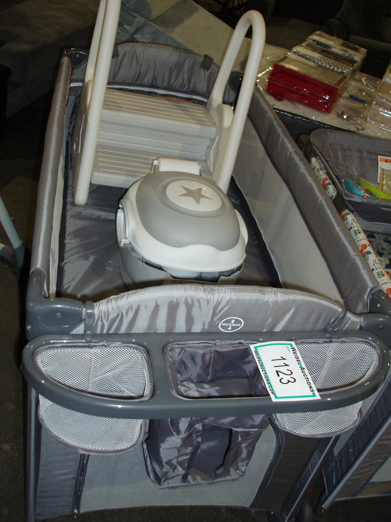 Living Basics Grey Playpen c/w plastic potty trainer and steps to big toilet