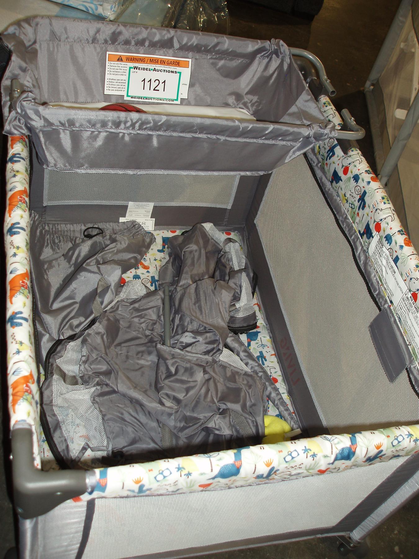 Living Basics Grey Playpen with changing station c/w baby toys