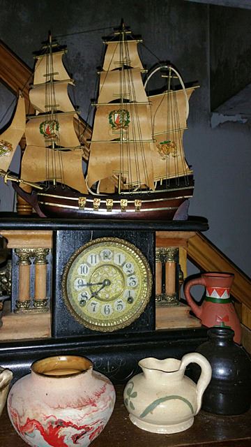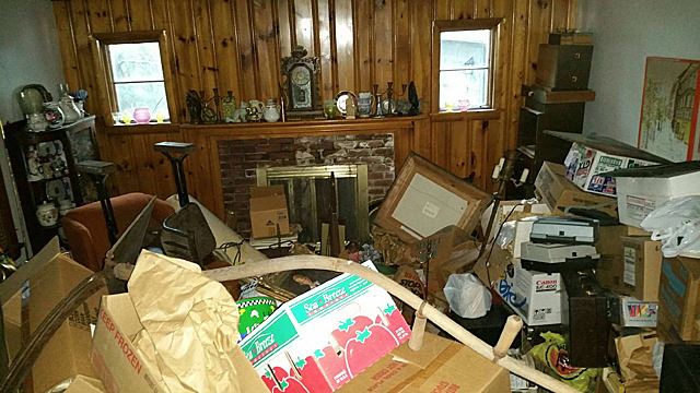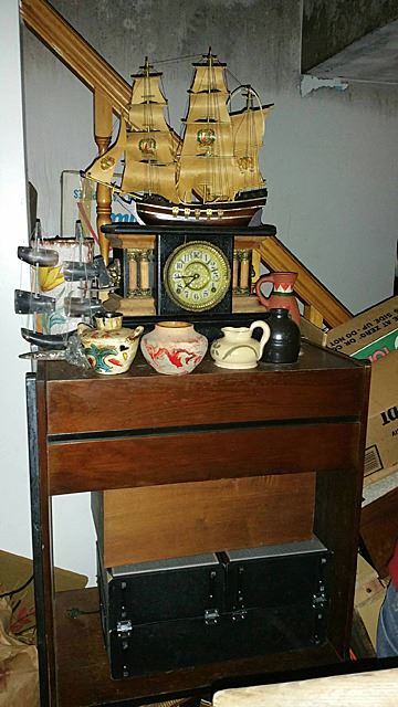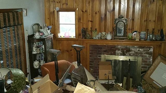 Living room estate contents include a time capule of estate treasures! Vintage mantel clocks, pottery, model ship, 2 full curio cabinets, colored glass, signed oil painting with gold gilt frame, unopened boxes, figurines, musical instruments, china, and much more to be discovered! From what we were able to find out, the family believes their is a strong box containing silver coins, reportedly 2 gold pocket watches somewhere in this home. This is from an estate of collectors who collected and bought for over 40 years! This home was purchased by the family 31 years ago, and with continued buying, it became filled and they moved out and continued to use the home for storage. A one of a kind buying opportunity! This lot is located in Terryville, CT, it is recommended that this be sold to a customer who is prepared to pick this up on their own. Bulk buyers, local, able bodied buyers, as the customer will be responsible for picking up, loading, and hauling the contents of this room away. Ideally if bidding on the interior room lots of this estate, Tim suggests that you buy them all, or by floor, so that nobody else has to go in to that area but you!
